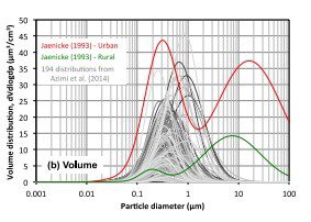 Dr. Stephens and his Built Environment Group at IIT have done extensive work in analyzing outdoor particle distributions. Their paper, Azimi et al. (2014), identified a total of 194 long-term average air distributions primarily from North America (the US and Canada) and Europe (Sweden, Finland, Norway, Denmark, Germany, France, Italy, Ireland, England, the Netherlands, Switzerland, Lithuania, Hungary, the Czech Republic and Bulgaria).