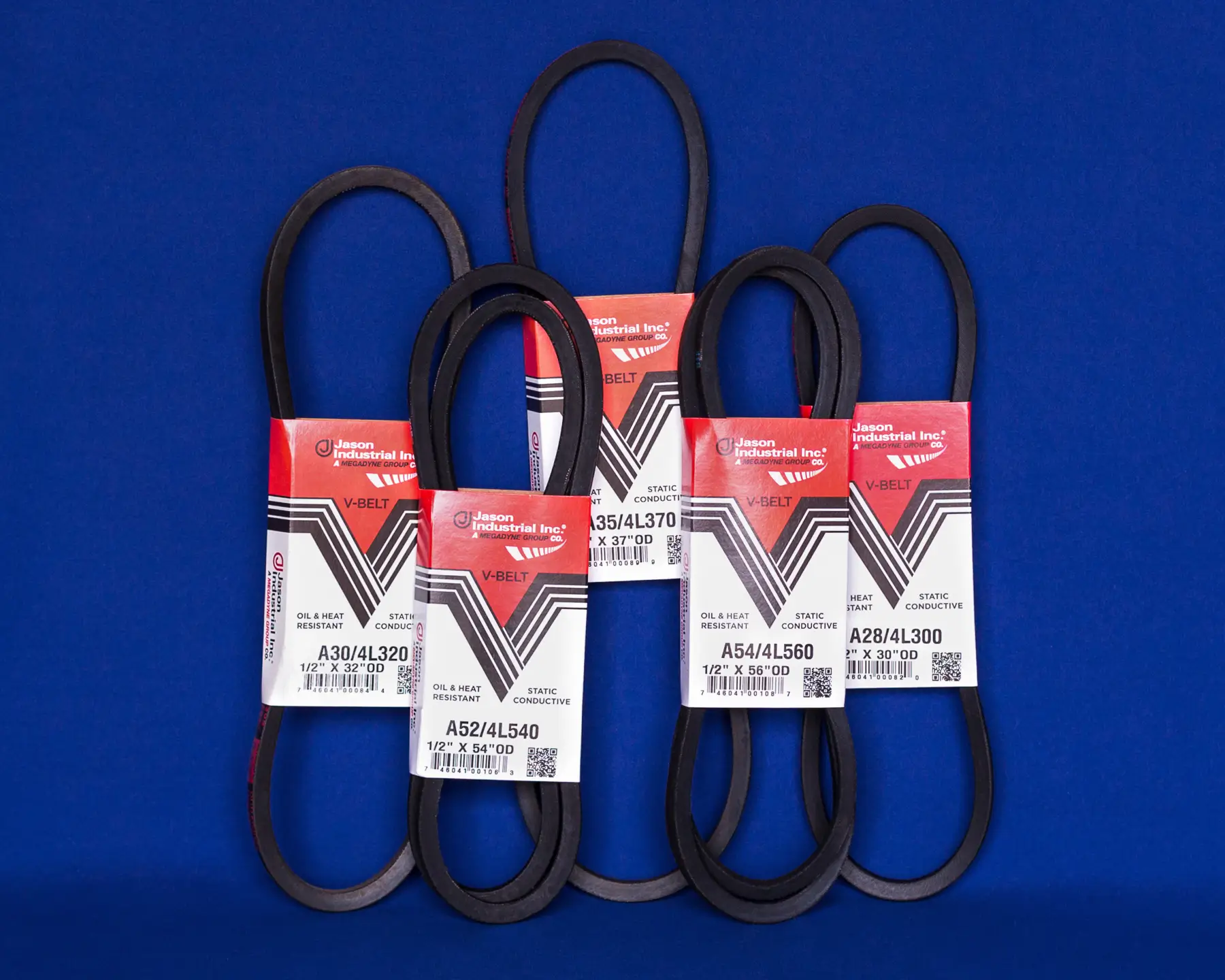 These Jason Multi-Plus belts are designed to be used on both A and 4L sizes. The belts are made to exacting specifications to ensure long life. The cover is made from a rubberized fabric that is formulated to stay flexible, resist cracking and that is oil, heat and abrasion resistant. The load section of the belts is composed of polyester cords that are chemically treated and then fused to prevent separation. The cords are positioned in the belts to take the tension in both FHP and classical applications. The load carrying section of these belts is made of a unique compound formulated to resist cracking and fatigue. Finally the compression section is made of an elastomer designed to resist compression fatigue, dissipate internal heat build-up and provide firm lateral pressure to the sidewalls. The A and 4L belts are one half inch wide. Belt size dimensions are nominal.